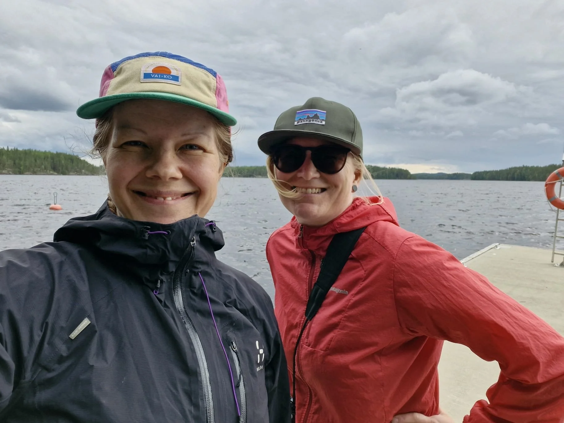 Vettä meillä taisi olla molemmilla 3–4 litraa. Jonkin verran sitä oli varattava ruokia ja kahveja varten, mutta suurin osa juotavaksi, kun lämpöisenä ja pääosin aurinkoisena kesäpäivänä oltiin liikkeellä. Siirsin omaan retkireppuuni juomarakon toisesta repusta ja se oli kyllä kätevä – letkun kautta tuli imeskeltyä vettä tasaisesti koko patikoinnin ajan.